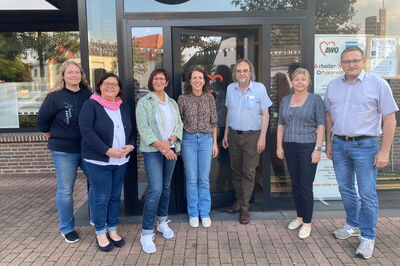 Foto: v. l. n. r.: Verena Stümpel (Fachbereichsleitung Kindertageseinrichtungen Nord-West, Christina Figge (Fachbereichsleitung Kindertageseinrichtungen West), Esther Palmer, Sandra Schubert (Stabsstelle Verbandspolitik und Öffentlichkeitsarbeit), Michael Stukowski (Ausreise- und Perspektivberatung), Melanie Angermund, Gregor Berning
